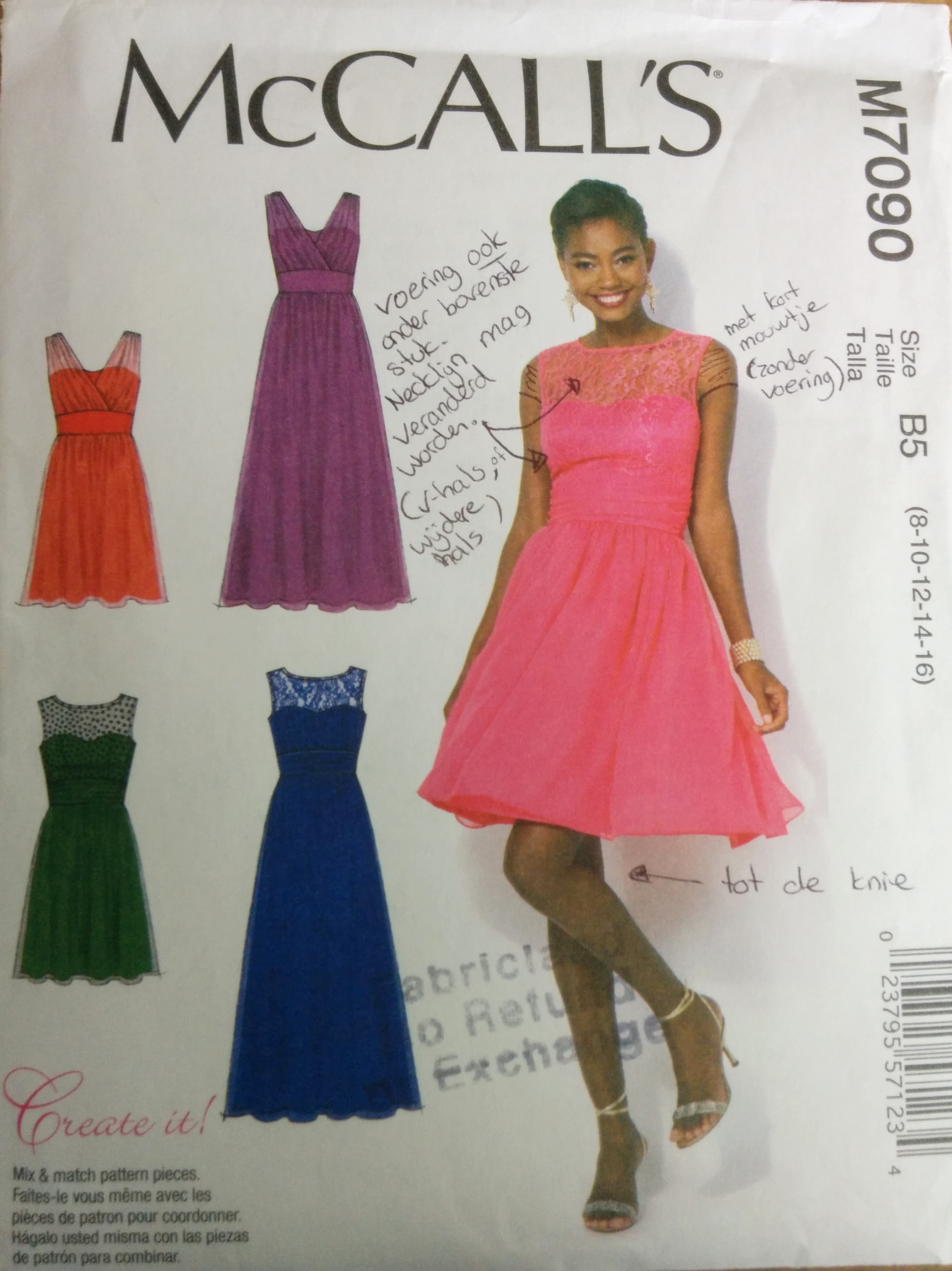 Tja, het gaat sneller als ik zelf voor het bovenlijfje een patroon teken op de maten van Lia. Want het Canadese inch-patroon ontrafelen kost meer tijd. We passen het model van de jurk een beetje aan zoals Lia dit het liefst heeft en de jurk is gemaakt.