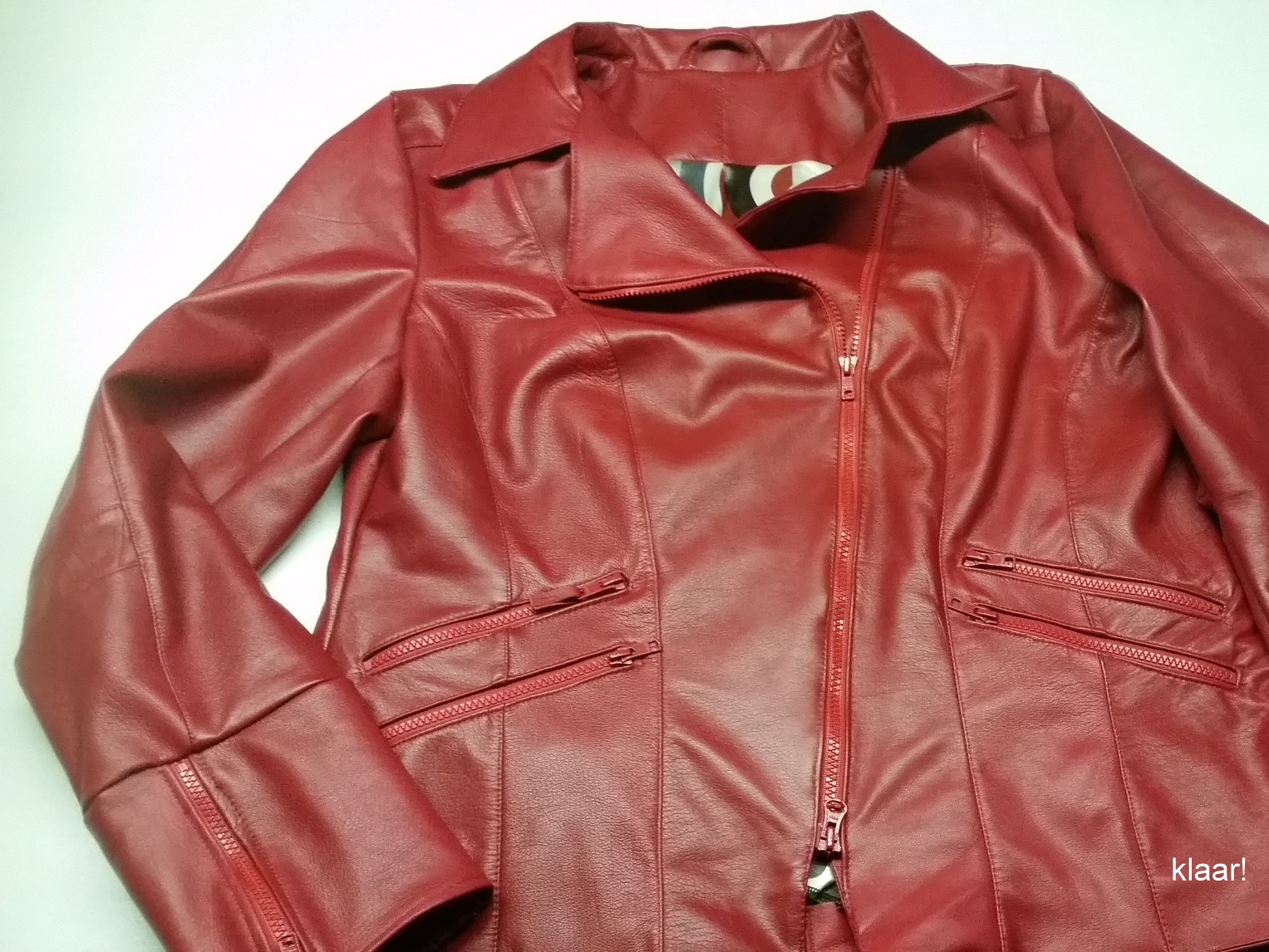 Al enige maanden liggen vijf zachte rode leren lamshuiden te wachten op mij om tot een leren jas te worden verwerkt. Zo’n klus vraagt tijd én concentratie en daarom heb ik drie aaneen gesloten dagen speciaal hiervoor in mijn agenda vrijgemaakt. Klik voor een filmpje  om het hele maakproces te zien.