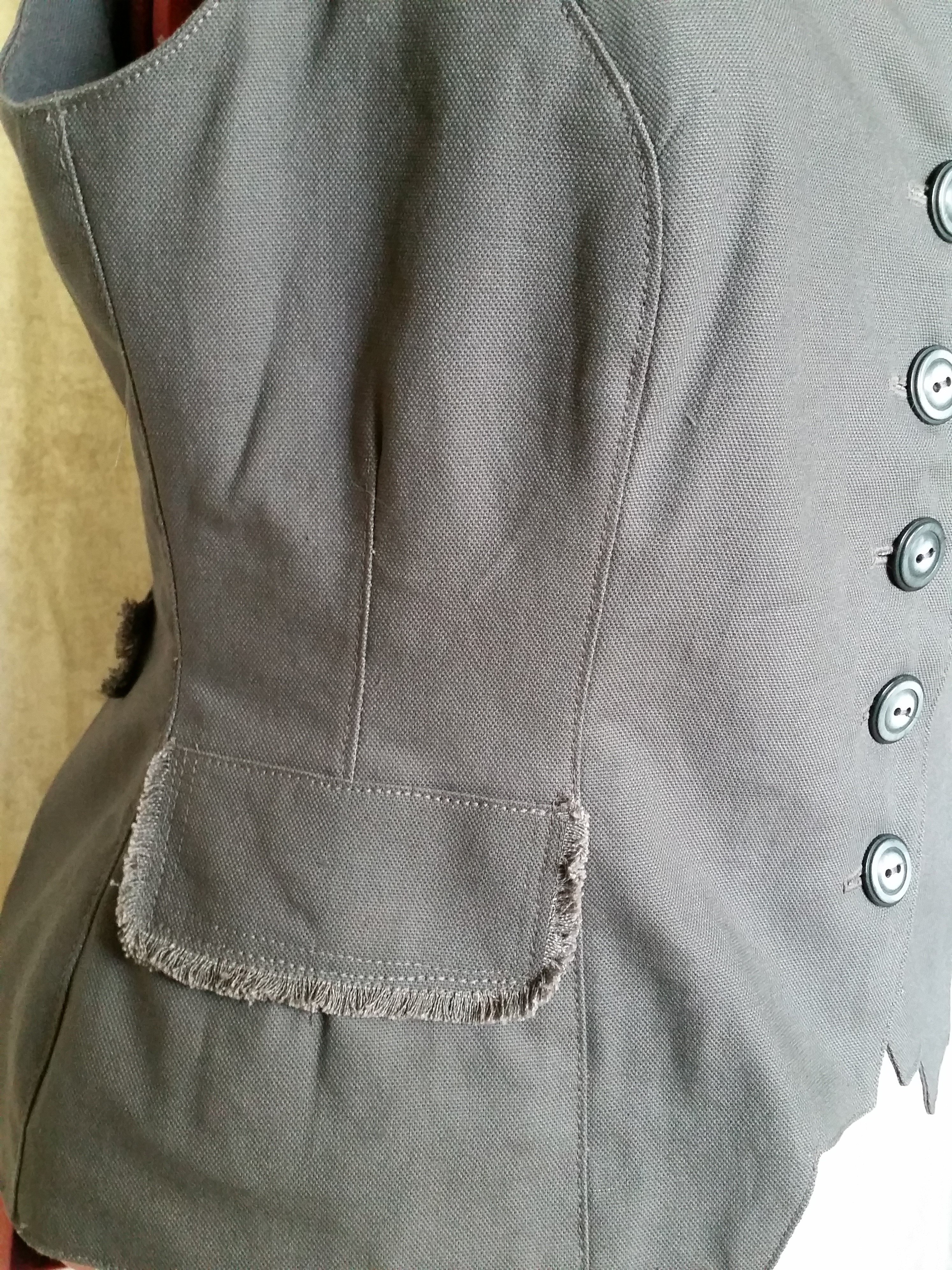 Ze verzamelde afbeeldingen van een aantal leuke modellen. En samen kwamen we tot een hesje die helemaal op haar maat gemaakt is én iPhone proof is. Voor de lezer is het niet te zien, maar aan de binnenkant is een zak-op-maat gemaakt voor het kleinood. Mooi toch?